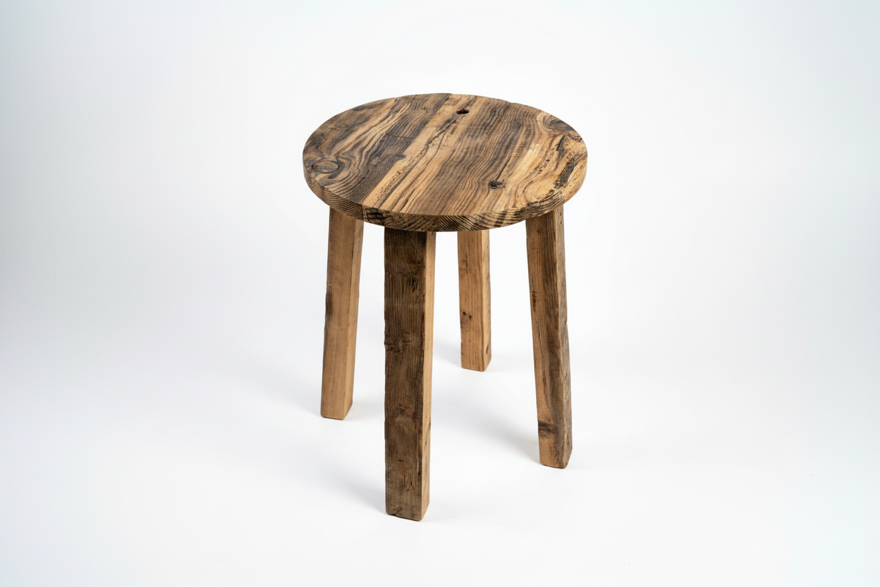 our reclaimed wooden stool adds a natural warm vibe to any space it graces.